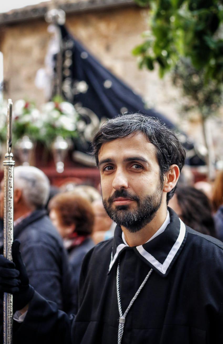 SALUDA DEL MAYORDOMO Queridos Hermanos, Desde mi infancia he estado vinculado a la Semana Santa Cacereña. Pasaba todo el año deseando que llegara la Cuaresma para sacar las túnicas de su hibernación. Cuando por fin llegaba ya el Domingo de Ramos, vivía esos días con pasión y fervor, hasta llegar el momento en el que cargaría en mis hombros a Nuestro Cristo Yacente o a Nuestra Virgen de la Soledad. Fue un auténtico regalo para mí, hace ya siete años, el poder formar parte de la Junta de Gobierno de esta humilde Hermandad y poder conocer de primera mano el maravilloso equipo que la formaba y que de manera desinteresada trabajaba semanalmente en sus enseres, mantos, andas o en las propias ermitas, de Soledad y Calvario, que tantas pequeñas reparaciones siempre han necesitado. Hoy me dirijo a vosotros, hermanos, como Mayordomo de esta Ilustre y Real Cofradía de Nuestra Señora de la Soledad y del Santo Entierro, sustituyendo a Miguel Ángel, para quien solo tengo palabras de agradecimiento por sus años de dedicación y amor a esta Cofradía como directivo y posteriormente, como mayordomo, los últimos diez años. Un paso que he decidido dar GRACIAS a las personas que me acompañan, de las que me contagio de su entusiasmo, buen hacer y amor por esta Cofradía. Este año os tenemos preparado varias novedades: vincular aún más el Acto del Descendimiento al desfile procesional o un nuevo y solemne acto a nuestro Cristo Yacente en su paso por la Plaza Mayor, novedades que estamos deseando contarte en nuestro cabildo, el próximo 8 de marzo a las 20:00 horas. Mientras, te esperamos en nuestro grupo de WhatsApp al que te pedimos que te unas, si es que no lo has hecho ya, escribiéndonos al teléfono 651-192-013 Os mando un abrazo en Cristo